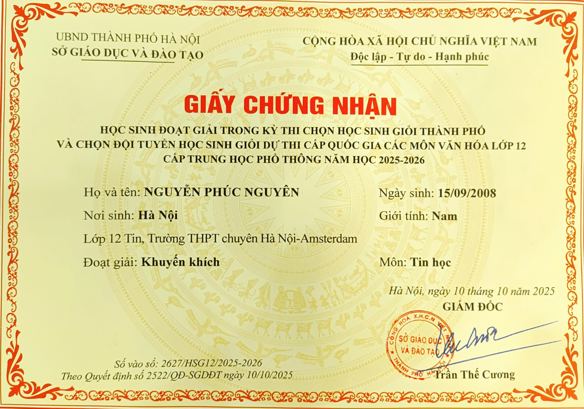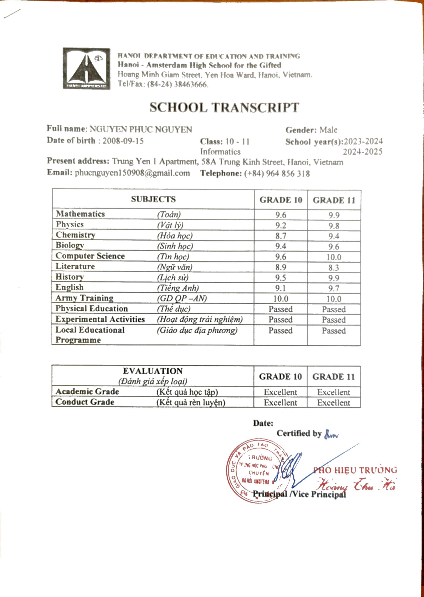 GPA 9.3 (Grade 10), 9.6 (Grade 11)