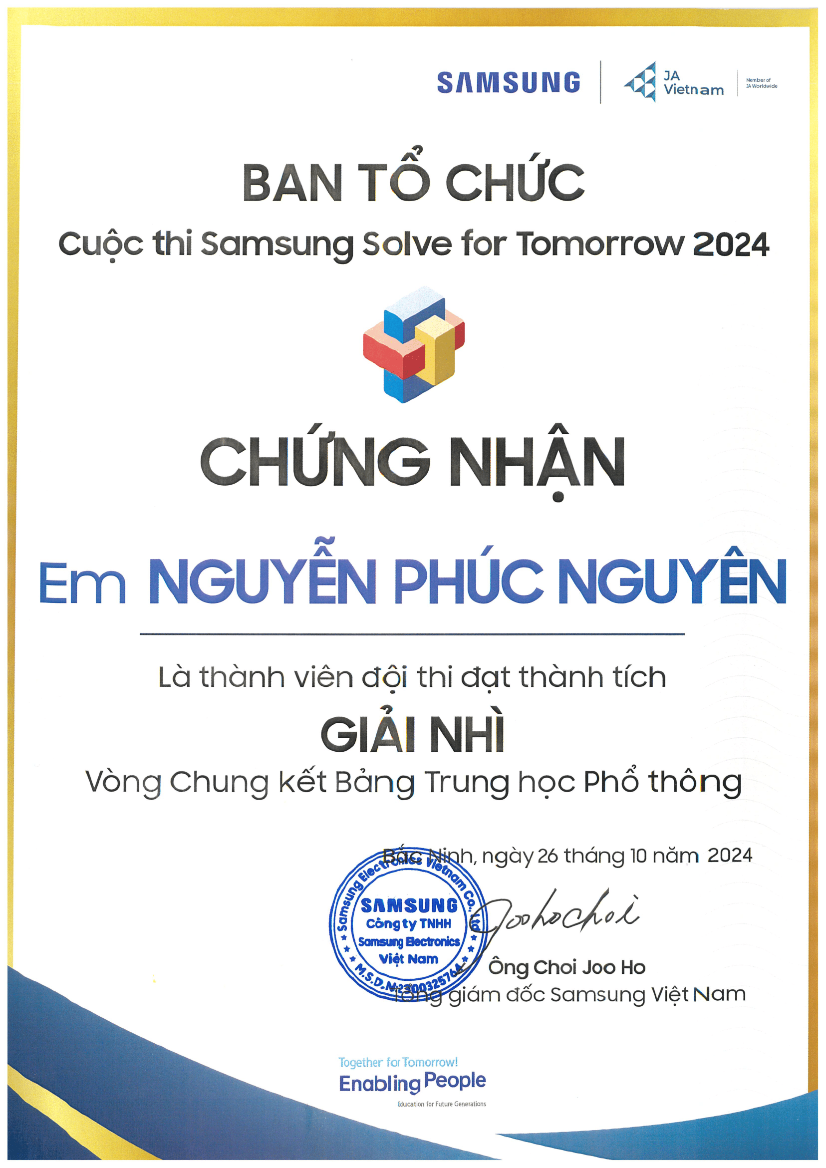 Samsung Solve for Tomorrow — National 2nd Prize (Silver) · HFA